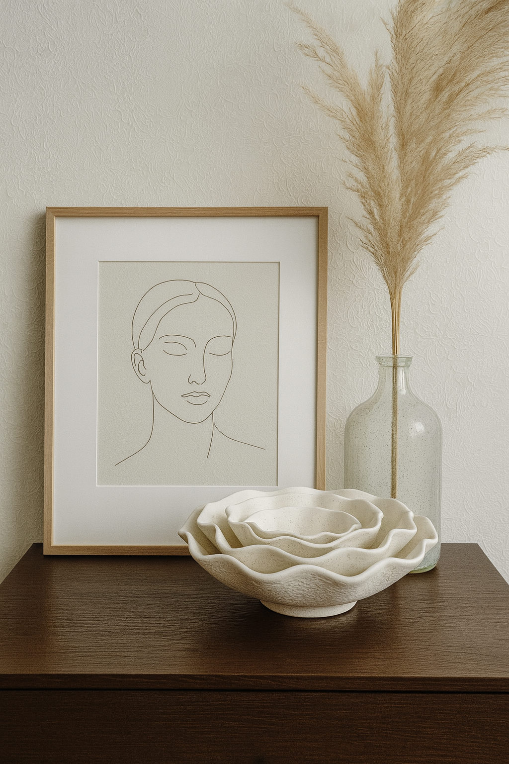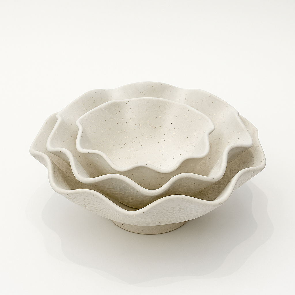 The stacking fruit bowls are hand-built in three distinctive clay bodies — a rich black stoneware, a warm tan speckled clay, and a soft sandy white body. Each piece is left raw and unglazed to celebrate the natural texture and tonal variation of the clay itself, offering an organic, tactile finish that feels both modern and timeless.